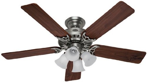 Featuring classic good looks, the Hunter Studio Series Ceiling Fan will add beauty and comfort to your home. As functional as it is attractive, the fan includes an elegant four-light fixture and a 52-inch five-blade design that makes it ideal for larger rooms. Also, it combines the traditional style of 19th century craftsmanship with 21st century technology to offer quality, energy savings, and whisper-quiet operation.